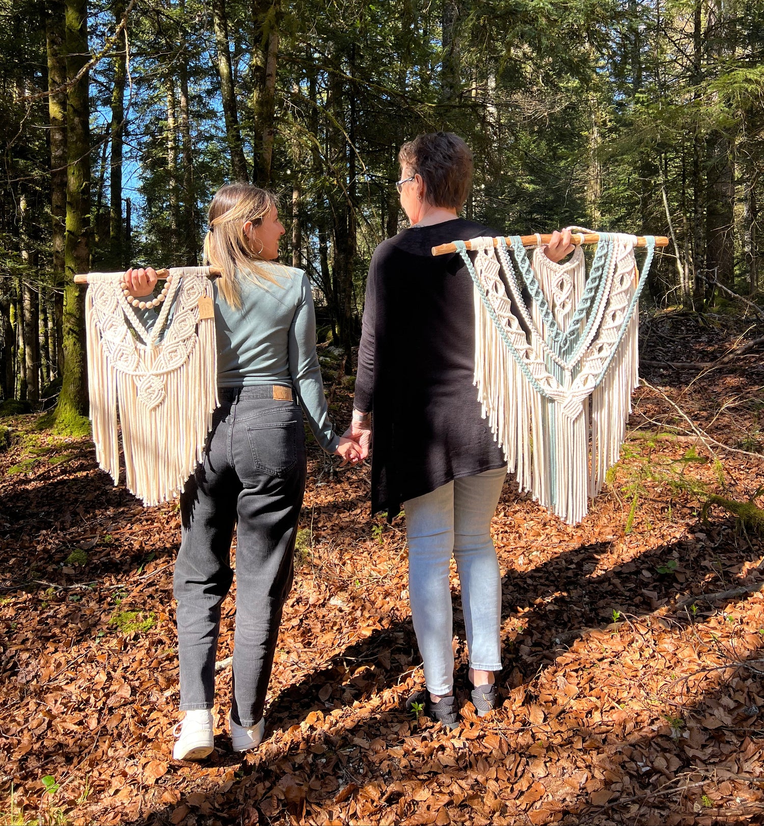 Tout a commencé dans un coin de salon, entre les rires, les fils de coton, et les mains de ma maman qui m'apprenaient à faire mes premiers noeuds. Le macramé, c'est devenu notre langage secret, notre façon d'être ensemble. Aujourd'hui, chaque pièces que nous créons est empreinte de cette tendresse, de ce lien invisible qui nous unit. Bienvenue dans notre univers, tissé à quart mains et à coeur ouvert.