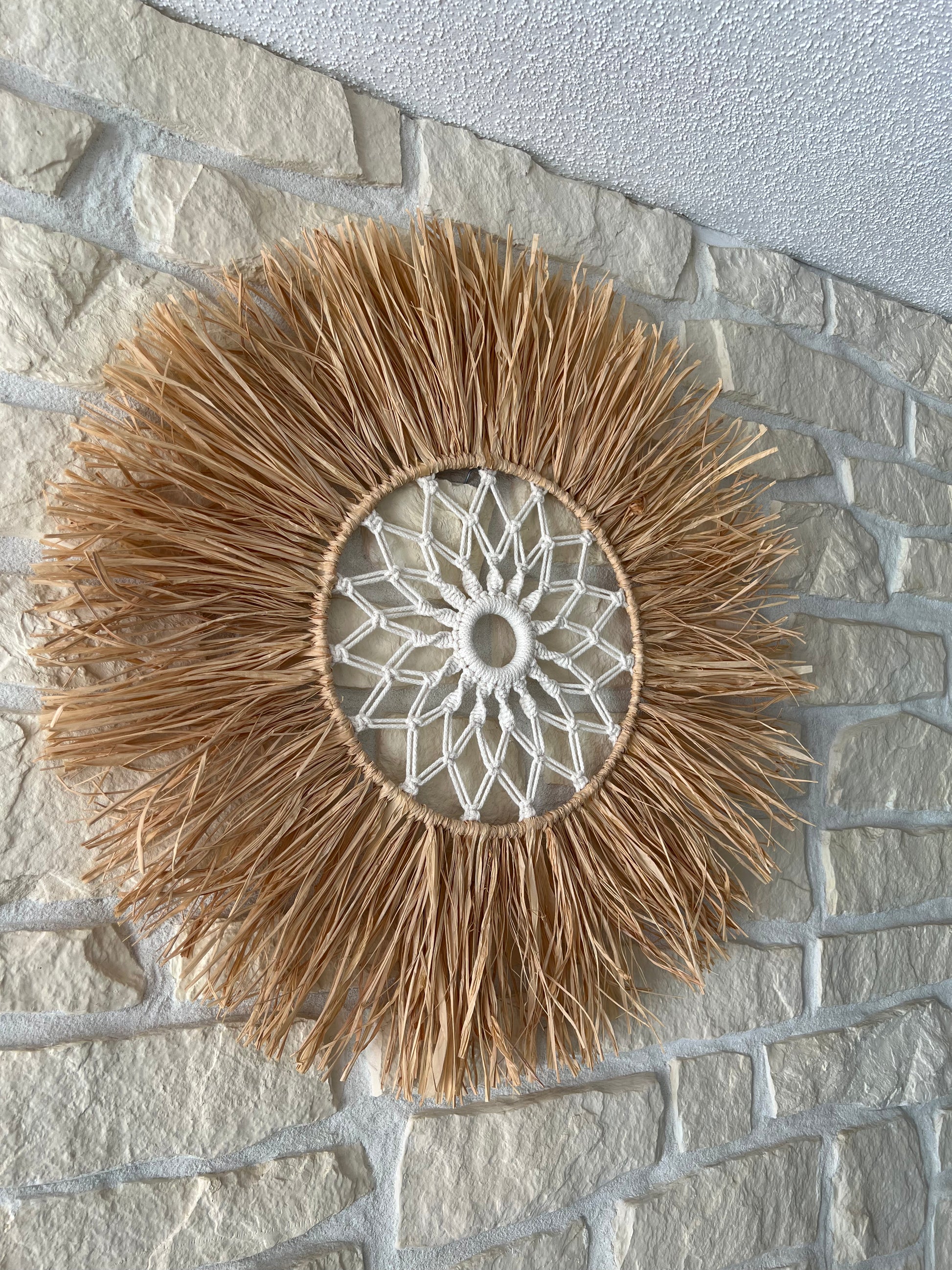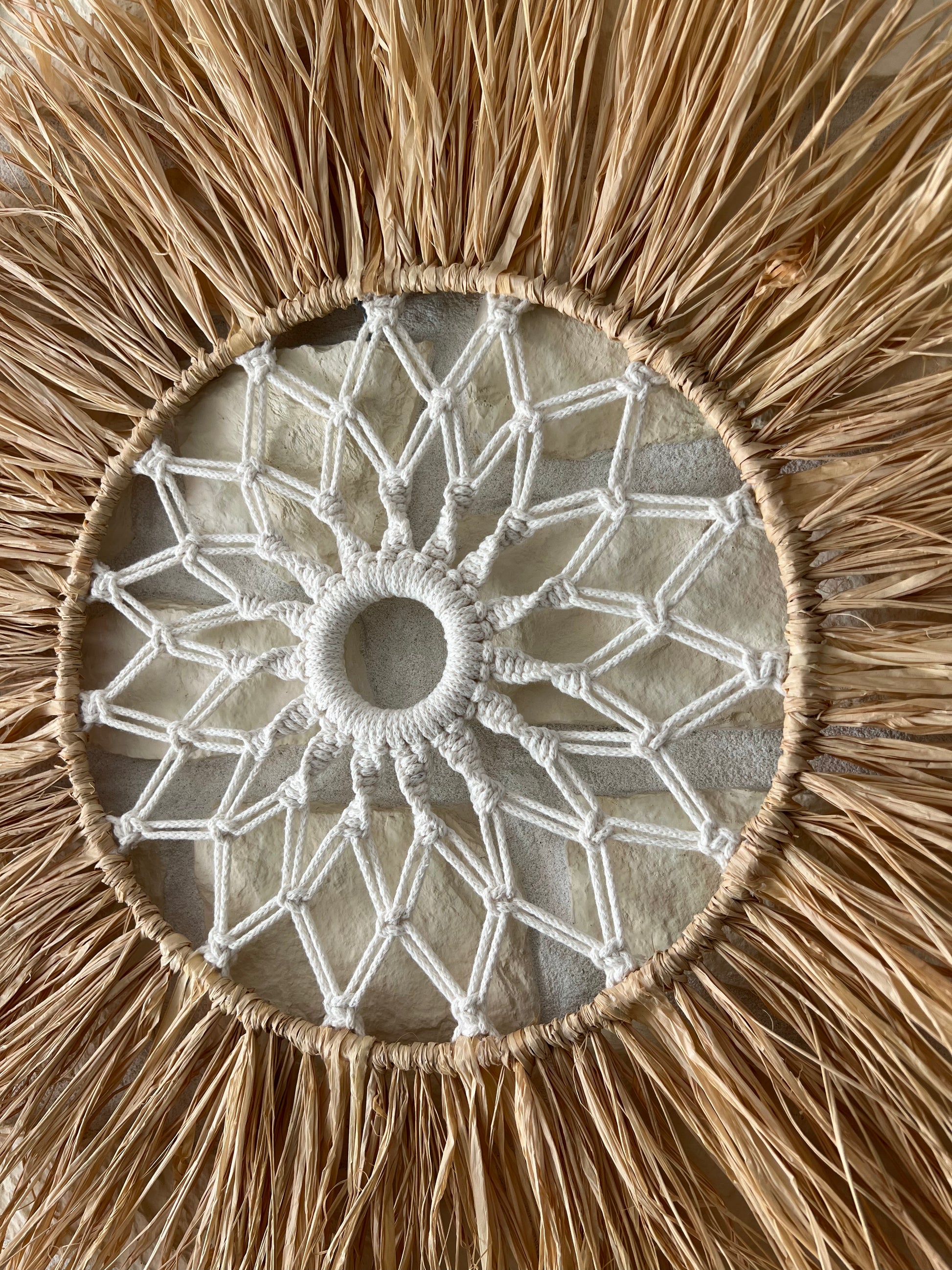 Un cercle parfait entre douceur du coton et la force du raphia, pour un mandala qui embellit et apaise votre espace.