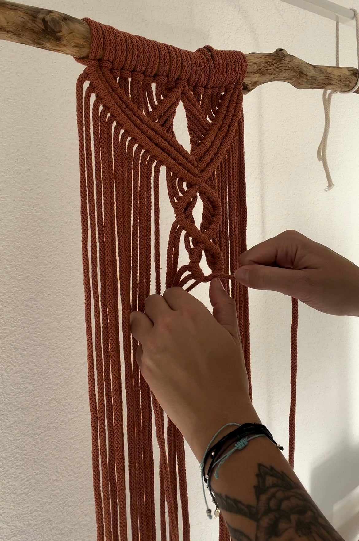 Tout a commencé sans le vouloir lorsque j’ai emménagé seule dans mon premier appartement en 2020 en pleine période de Covid. En cherchant des décorations qui me ressemblent et pas comme les autres, j’ai eu envie de créer un macramé. Ma maman, qui avait appris cet art dans son enfance, m’a alors transmis son savoir-faire et nos premières créations ont vu le jour!